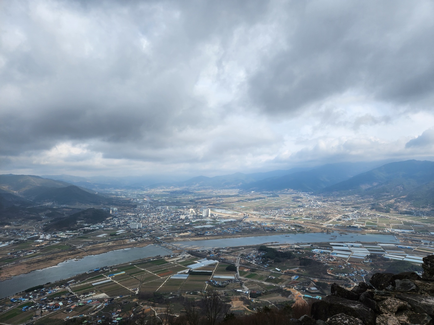 사성암이 명승지로 불리는 이유는 직접 올라서 보니 바로 알 수 있었습니다. 암자 마루에 앉아 아래를 내려다보니, 푸른 섬진강이 마치 비단처럼 구불구불 펼쳐져 있었어요. 그 위로 구례 평야가 드넓게 이어지고, 멀리 지리산 능선이 굽이치며 둘러싸고 있었습니다.